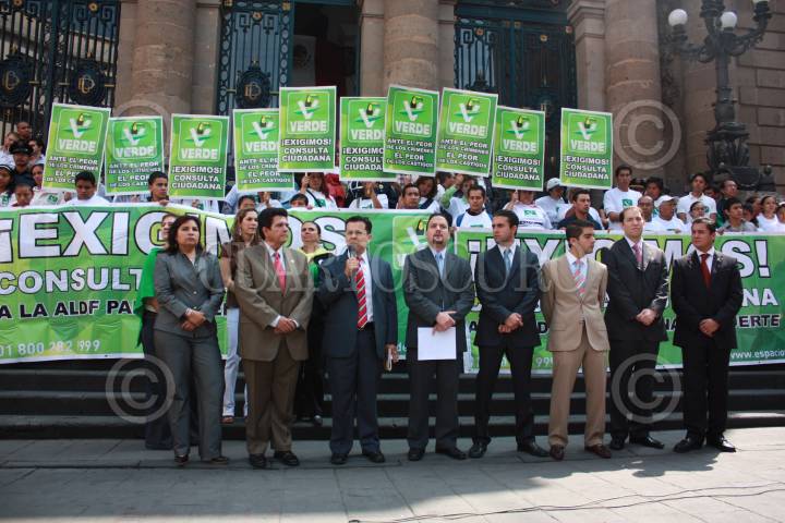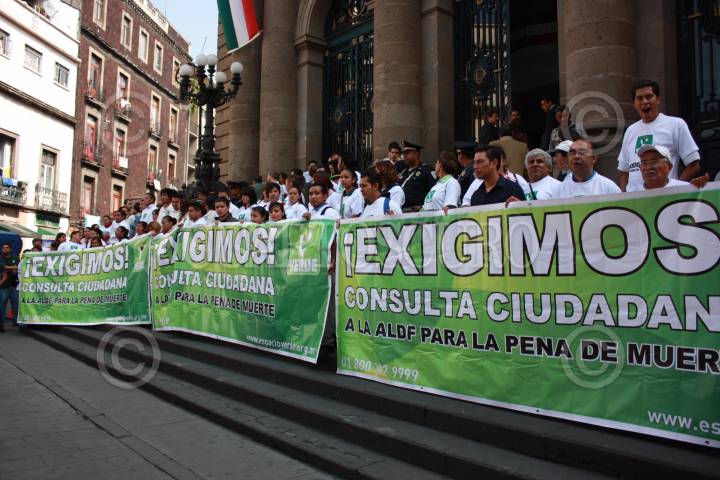 MÉXICO, D.F., 03SEPTIEMBRE2008.- Legisladores del Partido Verde Ecologista de México se manifestaron afuera de la Asamblea Legislativa, donde pidieron se impulse una consulta ciudadana sobre la pena de muerte para los secuestradores. FOTO: CUARTOSCURO.COM