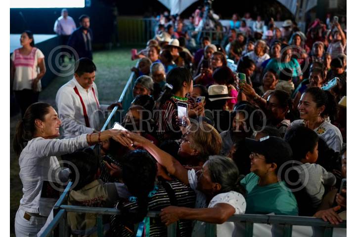 PUTLA VILLA DE GUERRERO, OAXACA, 25ENERO2025.- Claudia Sheinbaum, presidenta de México, encabezó la entrega de tarjetas de Pensión Mujeres Bienestar a habitantes de la región. FOTO: PRESIDENCIA/CUARTOSCURO.COM