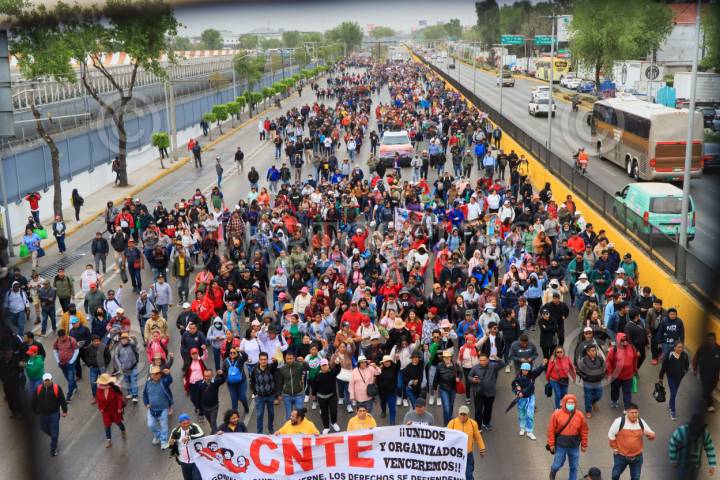 CIUDAD DE MÉXICO, 28MAYO2025.- Tras varias horas la comisión de la Coordinación Nacional de Trabajadores de la Educación (CNTE) salieron de la Secretaría de Gobernación, en donde se llevó a cabo una mesa de negociación con la titular de la SEGOB y SEP, entre la principal demanda de los maestros es la derogación de la Ley del ISSSTE de 2007, que impulsada por el ex Presidente, Felipe Calderón. A la par profesores de la CNTE bloquearon avenidas como Reforma y Circuito Interior. El contingente abandonó el Palacio de Cobián encabezados por Pedro Hernández, líder de la Sección 9 de la CNTE. FOTO: ROGELIO MORALES/CUARTOSCURO.COM