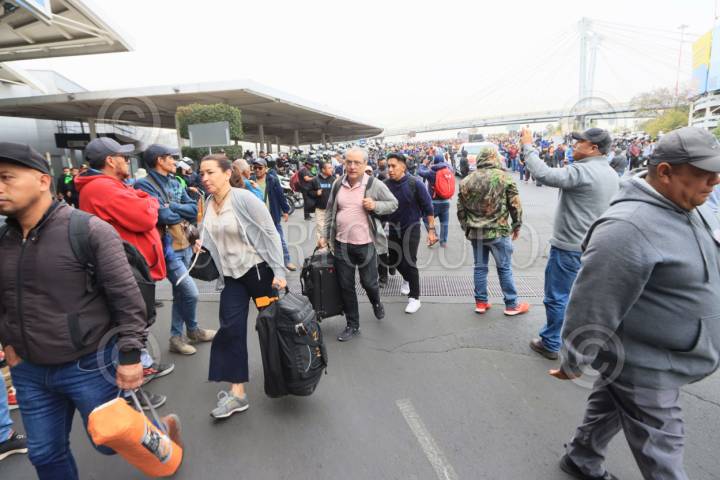 CIUDAD DE MÉXICO, 20MARZO2025.- Integrantes de la Coordinadora Nacional de Trabajadores de la Educación, bloquearon los accesos del Aeropuerto Internacional de la Ciudad de México (AICM), provocando intenso tráfico. Los profesores buscan que el gobierno federal elimine la llamada Ley del ISSSTE, ya que señalan que les afectarán en sus pensiones. FOTO: ROGELIO MORALES/CUARTOSCURO.COM