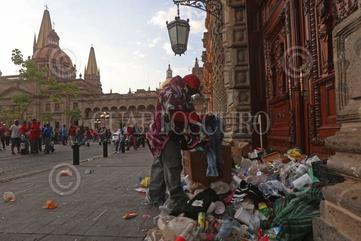 Imagen general de los alrededores de Palacio de Gobierno, esto durante la protesta que realizaron pepenadores de algunos basureros que tienen inconsistencias y fueron cerrados por el gobierno del estado.