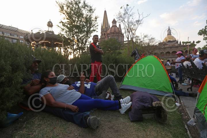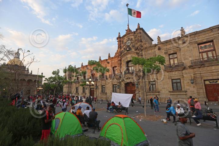 Pepenadores hacen plantón con casas de campaña, para pernoctar alrededor de Plaza de Armas, esto durante la protesta que realizaron pepenadores de algunos basureros que tiene inconsistencias y fueron cerrados por el gobierno del estado.