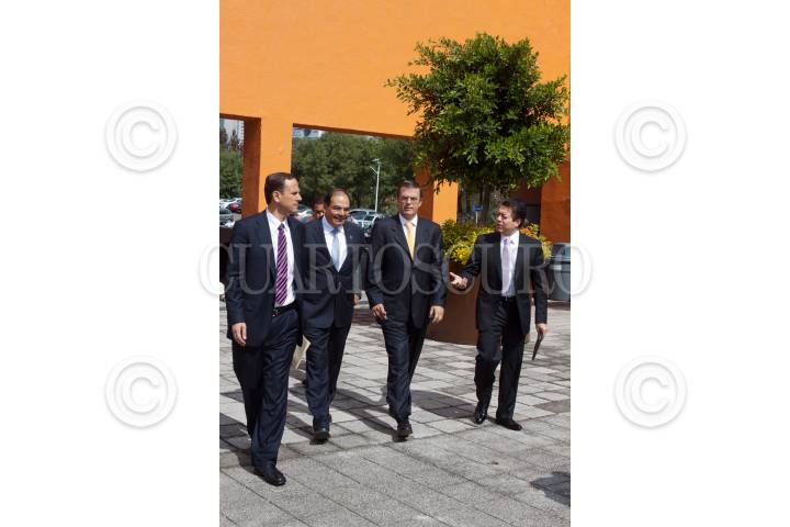 MÉXICO, D.F., 29JULIO2011.- Daniel Moska Arreola, director general del Tecnológico de Monterrey, Mario Delgado, secretario de Educación, Campus Santa Fe, Marcelo Ebrard Casaubón, Jefe de Gobierno, y Arturo Molina Gutiérrez, rector de la Zona Metropolitana del Tec de Monterrey, realizaron un recorrido por las instalaciones del centro educativo en el marco de la presentación del curso "Prepa Sí: Diseño y Creación de Pequeñas Empresas", el cual se impartirá a jóvenes inscritos en el programa social "Prepa Sí" y será dado en la sede del Tec de Monterrey ubicado en Santa Fe. FOTO: MOISÉS PABLO/CUARTOSCURO.COM