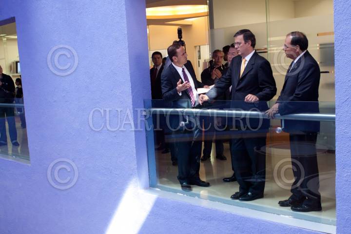 MÉXICO, D.F., 29JULIO2011.- Daniel Moska Arreola, director general del Tecnológico de Monterrey, Campus Santa Fe, y Marcelo Ebrard Casaubón, Jefe de Gobierno, realizaron un recorrido por las instalaciones del centro educativo en el marco de la presentación del curso "Prepa Sí: Diseño y Creación de Pequeñas Empresas", el cual se impartirá a jóvenes inscritos en el programa social "Prepa Sí" y será dado en la sede del Tec de Monterrey ubicado en Santa Fe. FOTO: MOISÉS PABLO/CUARTOSCURO.COM