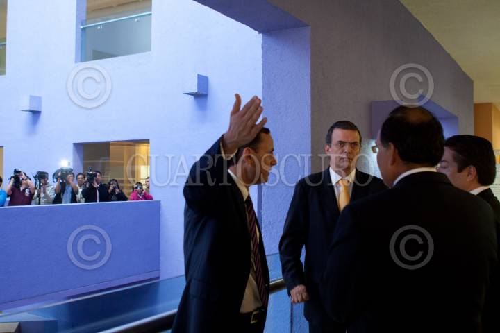 MÉXICO, D.F., 29JULIO2011.- Daniel Moska Arreola, director general del Tecnológico de Monterrey, Campus Santa Fe, Arturo Molina Gutiérrez, rector de la Zona Metropolitana del Tec de Monterrey, Marcelo Ebrard Casaubón, Jefe de Gobierno, y Mario Delgado, secretario de Educación, realizaron un recorrido por las instalaciones del centro educativo en el marco de la presentación del curso "Prepa Sí: Diseño y Creación de Pequeñas Empresas", el cual se impartirá a jóvenes inscritos en el programa social "Prepa Sí" y será dado en la sede del Tec de Monterrey ubicado en Santa Fe. FOTO: MOISÉS PABLO/CUARTOSCURO.COM