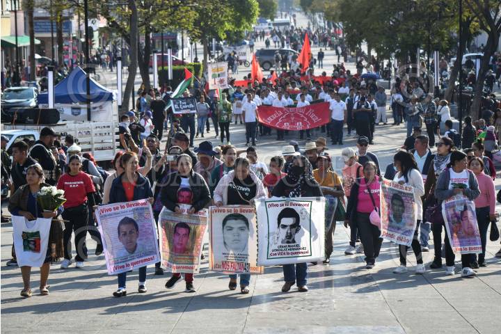 CIUDAD DE MÉXICO, 26DICIEMBRE2024.- Madres y padres de los 43 normalistas desaparecidos de Ayotzinapa, junto a estudiantes, realizaron una marcha que partió de la glorieta de Peralvillo rumbo a la Basílica de Guadalupe, como parte de la actividades de la "123 Acción global por Ayotzinapa" en conmemoración del décimo aniversario de los hechos en Iguala, Guerrero. FOTO: MARIO JASSO/CUARTOSCURO.COM