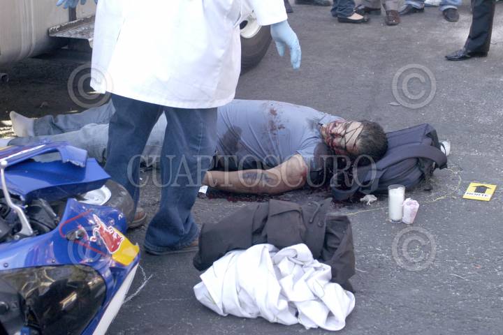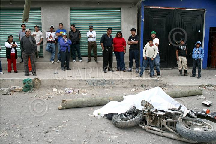 LOS REYES LAPAZ, ESTADO DE MÉXICO, 01ENERO2011.- Un sujeto de aproximadamente 25 años pierde la vida al impactarse con su motocicleta contra un poste de cableado telefónico al perder el control de la unidad cuando viajaba a toda velocidad sobre Avenida Camino Viejo a Texcoco a la altura de la calle Las Flores colonia Tlazala Municipio de Los Reyes La Paz. FOTO: LUIS CARBAYO/CUARTOSCURO.COM
