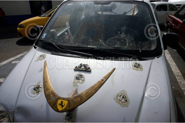 OAXACA, OAXACA, 08ENERO2009.- Un carro particularmente peculiar, escenifica un paraíso perdido por duendes, hadas y hasta la piel de una culebra, sobre su tablero. FOTO: MAX NÙÑEZ/CUARTOSCURO.COM