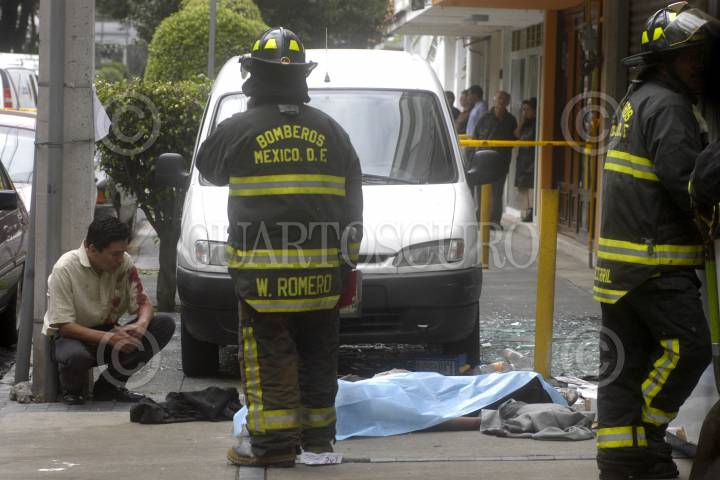 MÉXICO, D.F., 26AGOSTO2010.- Una mujer de 35 años aproximadamente perdió la vida al explotar un local de tintorería a causa de una fuga en la línea del gas que alimenta las calderas. Los hechos se registraron en la esquina de las calles Adolfo Prieto y Félix Cuevas en la colonia Del Valle. FOTO: LUIS CARBAYO/CUARTOSCURO.COM