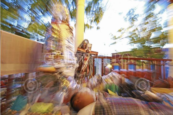 SAN FRANCISCO DE CAMPECHE, CAMPECHE, 29ENERO2017.- Un peregrino descansa a los pies de la imagen de la Virgen de Guadalupe, para después continuar su camino. FOTO: MAIRA TULIA P. B. /CUARTOSCURO.COM