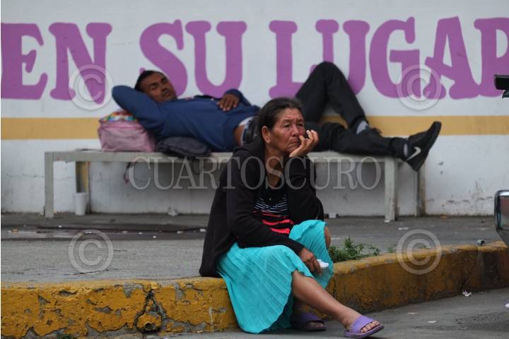 Migrantes toman un descanso al pie de la carretera en el municipio de Frontera Hidalgo.