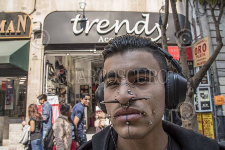 CIUDAD DE MÉXICO, 18ENERO2017.- Por la calle peatonal Madero en la zona centro, es común encontrar jóvenes tatuados y perforados, entregando tarjetas de tiendas de tatuajes y piezas para el cuerpo. FOTO: TERCERO DÍAZ /CUARTOSCURO.COM