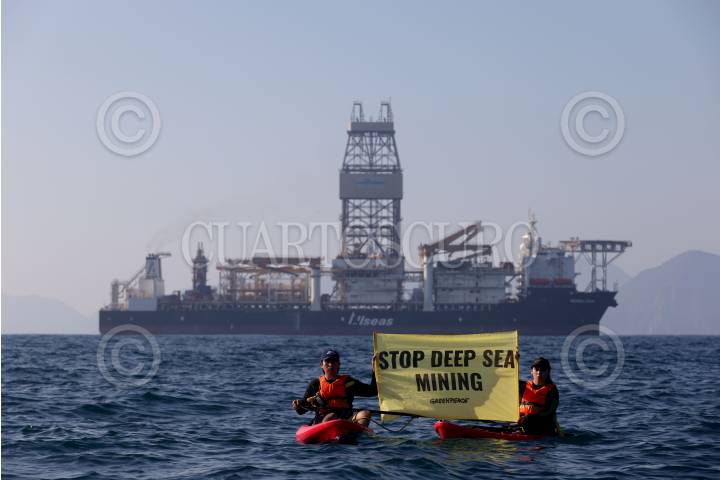 Greenpeace confronta de forma pacífica a barco dedicado a la minería en aguas profundas de Manzanillo.
