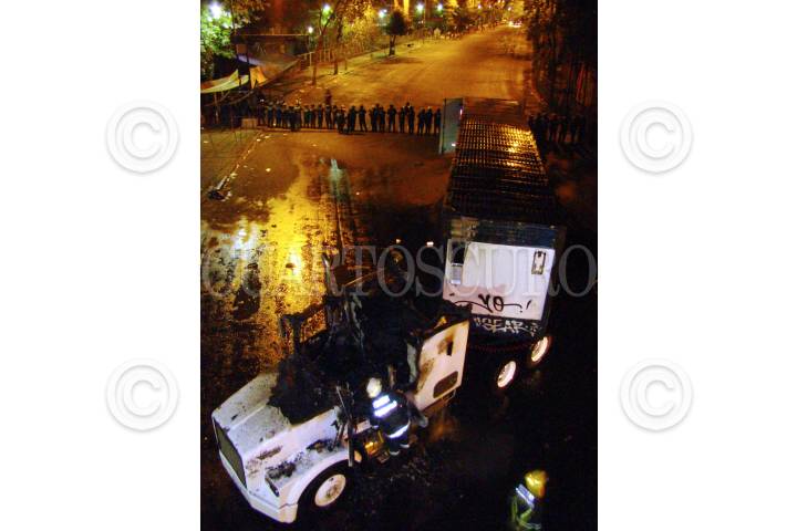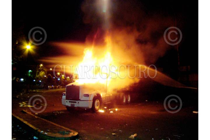 MÈXICO D.F. 22 de Abril de 2008. Esta madrugada, Habitantes del barrio de tepito se enfrentaron a la policia, en protesta a un operativo que las autoridades federales realizaròn para el decomiso de perfumeria ilegal, en una bodega de las calles Gonzales Ortega y Caridad, en los hechos se quemaron dos automoviles y un trailer sobre la avenida del trabajo, tambien en el lugar se registraron algunos conatos de violencia. FOTO: LUZ ACEVEDO/CUARTOSCURO.COM