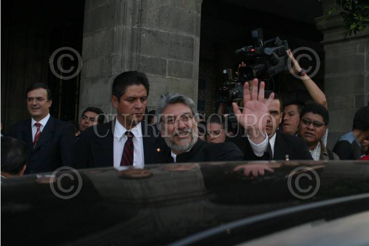 MÉXICO, D.F., 03NOVIEMBRE2008.- Fernando Lugo Méndez presidente de Paraguay a su salida del edificio del GDF donde recibió las llaves de ciudad, medalla y pergamino de declaratoria de huésped distinguido de manos de Marcelo Ebrar jefe de Gobierno del Distrito Federal. FOTO: SÁSHENKA GUTIÉRREZ/CUARTOSCURO.COM