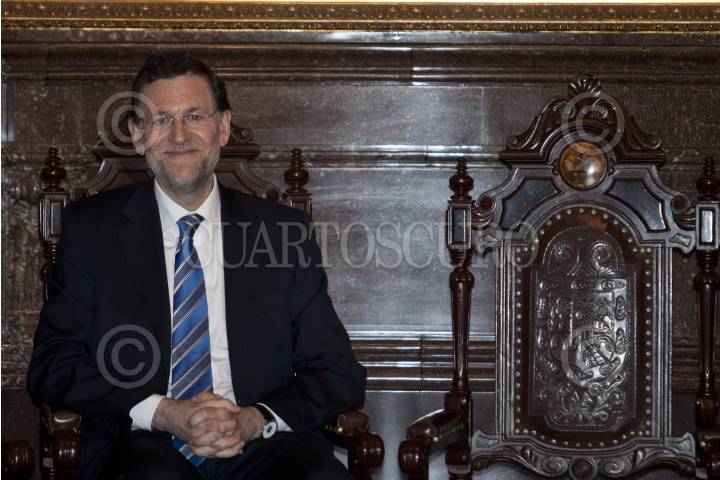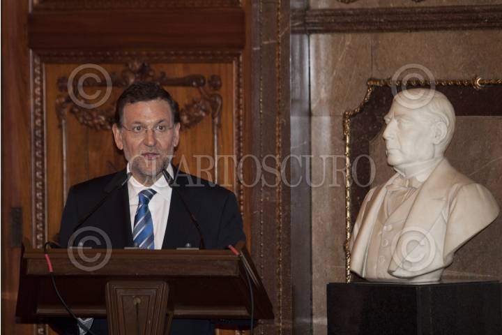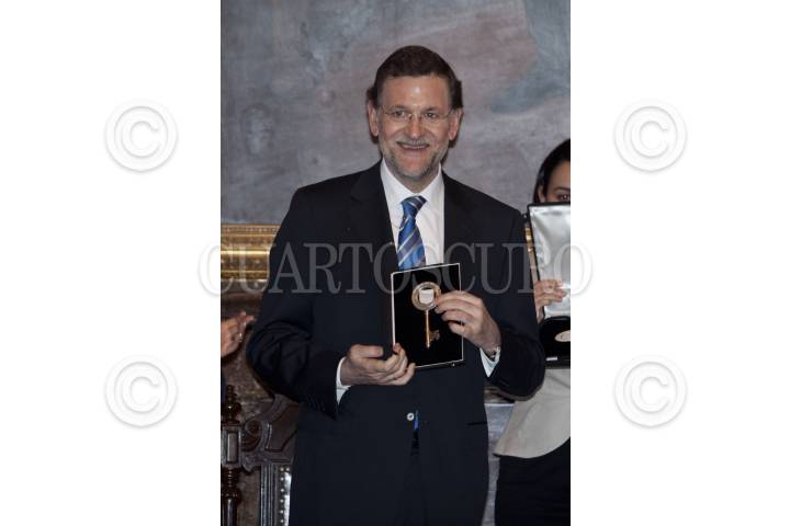 MÉXICO, D.F., 18ABRIL2012.- Mariano Rajoy Brey, presidente del gobierno Español durante la ceremonia de entrega de la Llave de la Ciudad y Pergamino de manos de Marcelo Ebrard, jefe de gobierno del Distrito Federal durante un acto en el Salón de los Cabildos del Antiguo Palacio del Ayuntamiento. FOTO: RODOLFO ANGULO /CUARTOSCURO.COM