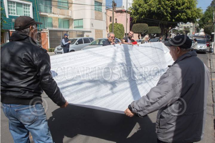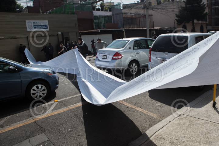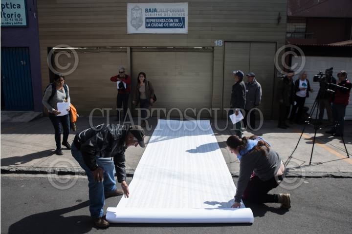 CIUDAD DE MÉXICO,01FEBRERO2018.- Miembros de la organización "Agua para todos" acompañados de diversos colectivos sociales, acudieron a la representación del gobierno de Baja California en la capital para entregar un comunicado y un pergamino con más de 26 mil firmas para ehcar atrás la construcción de la cervecera de Constellation Brands en la ciudad de Mexicali, dejando en desabasto de agua al campo, valle y citadinos de la capital de dicho estado. FOTO: TERCERO DÍAZ /CUARTOSCURO.COM