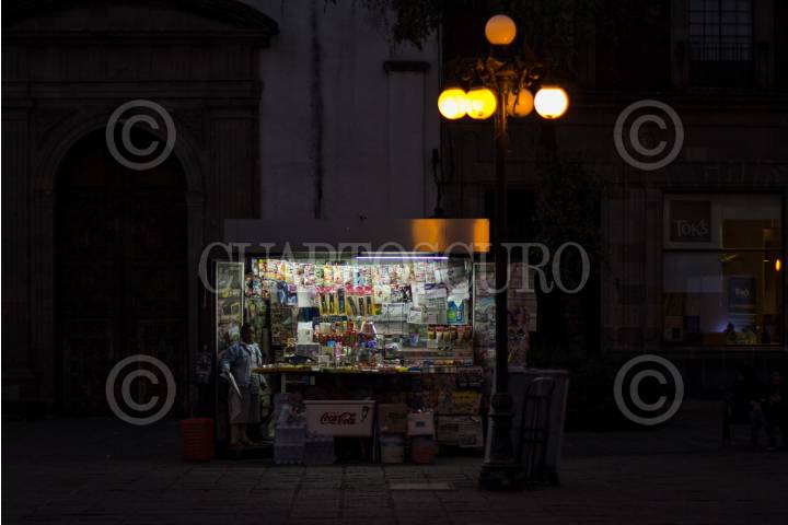 CIUDAD DE MÉXICO, 19NOVIEMBRE2017.- Un modesto puesto de periódicos ubicado en la plaza de Santo Domingo observa los últimos destellos de luz natural, mientras tanto los faroles del centro histórico comienzan a iluminarse. FOTO: GALO CAÑAS /CUARTOSCURO.COM