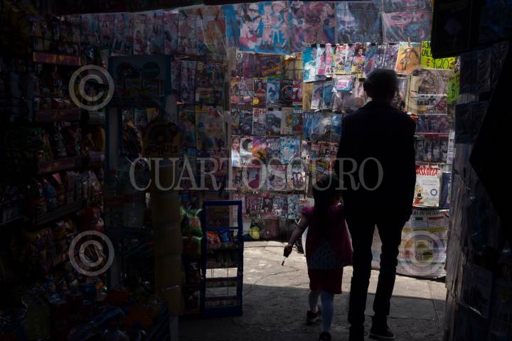 CIUDAD DE MÉXICO, 25ABRIL2019.- Una señora y su hija pasan por un puesto de periódicos que se encuentra en el Mercado la Merced. FOTO: GRACIELA LÓPEZ /CUARTOSCURO.COM