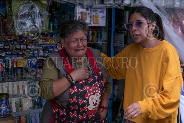 CIUDAD DE MÉXICO, 21JUNIO2024.- Una vendedora de periódicos llora después de que manifestantes pelearan frente a su puesto de periódicos, durante una protesta en donde vendedores ambulantes se enfrentaron con la policía. Lo anterior frente al Palacio de Bellas Artes. FOTO: ALICE MORITZ/CUARTOSCURO.COM
