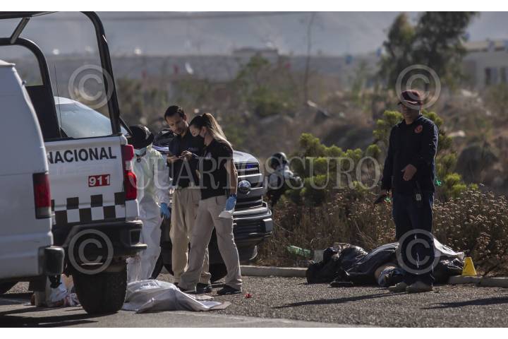 TIJUANA, BAJA CALIFORNIA 28ABRIL2025.- Sobre la Avenida Aeropuerto con dirección a la colonia Libertad, a metros del Aeropuerto Internacional de Tijuana, se registró una agresión armada que dejo el saldo de un hombre y una mujer sin vida, quienes se encontraban a bordo de un vehículo pick up Ford Lobo de color gris. Las unidades de emergencia arribaron al lugar de los hechos y localizaron a un hombre y una mujer lesionados por impactos de arma de fuego al interior del vehículo. Paramédicos de la Cruz Roja llegaron para brindarle los primeros auxilios a las víctimas, sin embargo, fueron declarados sin vida en el lugar. Según testigos, escucharon disparos a la altura del aeropuerto y visualizaron que los presuntos responsables viajaban a bordo de un vehículo tipo sedan de color blanco. En la zona se realizó un fuerte operativo policíaco, sin embargo, no hay registró de personas detenidas relacionadas a los hechos. Agentes de la Fiscalía y Servicios Periciales quedaron a cargo de la escena para realizar las investigaciones correspondientes. FOTO: OMAR MARTÍNEZ / CUARTOSCURO.COM