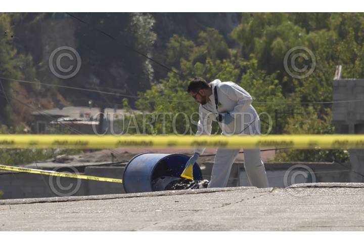 Localizan un cuerpo sin vida en el interior de un tambo de plástico.