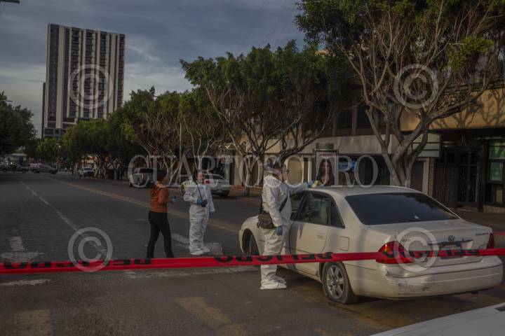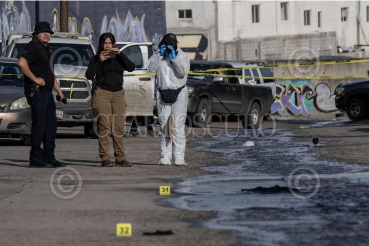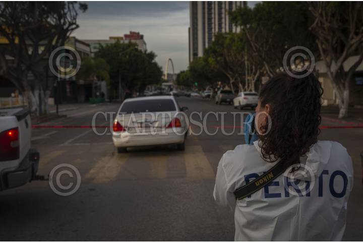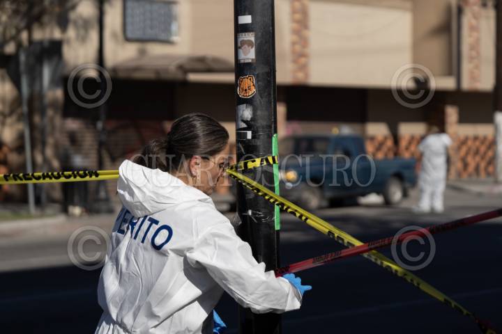 Un agente toma una foto donde ocurrió una balacera oen la avenida Revolución de Tijuana