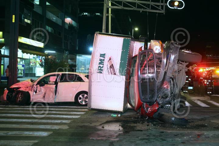 CIUDAD DE MÉXICO., 31AGOSTO2019.- Camión repartidor y Audi chocan volcando el camión repartidor de periódicos, en el cruce de avenida Coyoacán y Félix Cuevas en la colonia Del Valle. Del accidente no hubo lesionados. FOTO: LUIS CARBAYO /CUARTOSCURO.COM