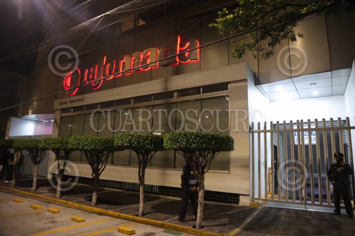 CIUDAD DE MÉXICO, 05JUNIO2025. Fachada del periódico La Jornada en la madrugada de los primeros minutos del 5 de junio donde el Sindicato Independiente de Trabajadores de la Jornada (SITRAJOR) había emplazado a huelga para luego desistir. FOTO: EDGAR NEGRETE LIRA/CUARTOSCURO.COM