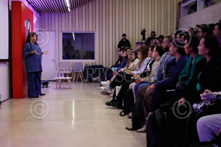 BOGOTÁ, COLOMBIA, 26JULIO2025.- La mexicana Alejandra Higareda, directora de Malvestida impartió una clase magistral en el marco del 13 Festival Gabo con el tema “Periodismo rebelde o como salir del molde para contar historias”. La especialista en comunicación donde propone repensar la narrativa periodística con creatividad y combinar el arte, cine, mercadotecnia para salir del molde tradicional informativo. FOTO: MARCELO PALACIOS/CUARTOSCURO.COM