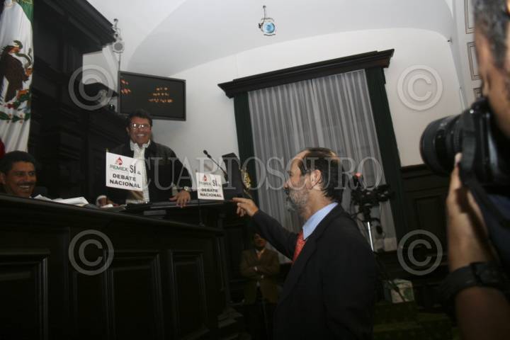 MÉXICO, D.,F 11ABRIL2008.- Alejandro Chanona,Javier Gonzalez Garza Carlos Navarrete,Dante Delgado Coordinadores parlamentarios del Frente Amplio Progresista (FAP) tanto del Senado como de la Cámara de Diputados en el salon de plenos de la camara de Senadores donde permanece tomada la tribuna. FOTO: SASHENKA GUTIERREZ/CUARTOSCURO.COM