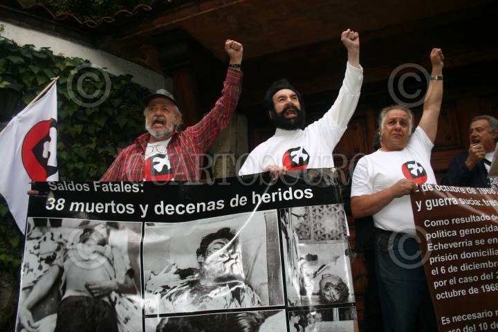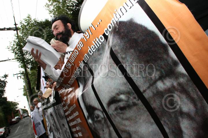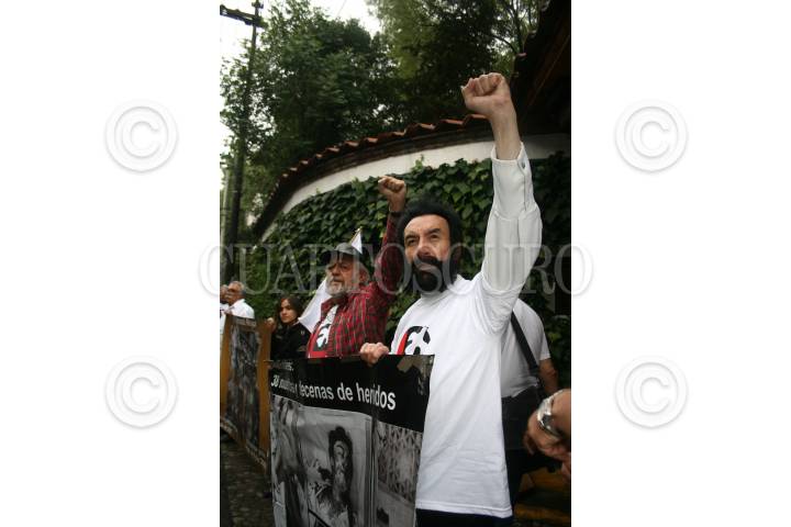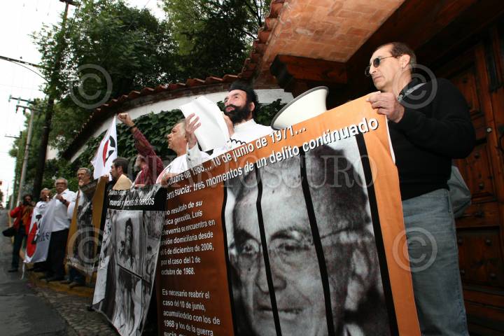 MÉXICO, D.F., 10JUNIO2008.-A 37 años del halconazo integrantes del comite del 68 se manifestó a las afueras del domicilio del ex presidente Luis Echeverria donde permanece en arresto domiciliario. FOTO: SASHENKA GUTIERREZ/CUARTOSCURO.COM