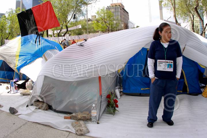 MÉXICO, D.F., 29NOVIEMBRE2009.- Karla Ledesma Melendez una de las mujeres que permanece en huelga de hambre en las instalaciones de la Comisión Federal de Electricistas en Paseo de la Reforma. FOTO: SÁSHENKA GUTIÉRREZ/CUARTOSCURO.COM