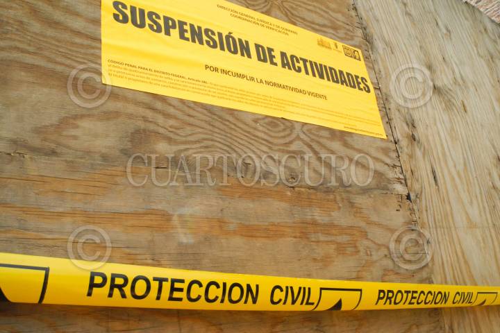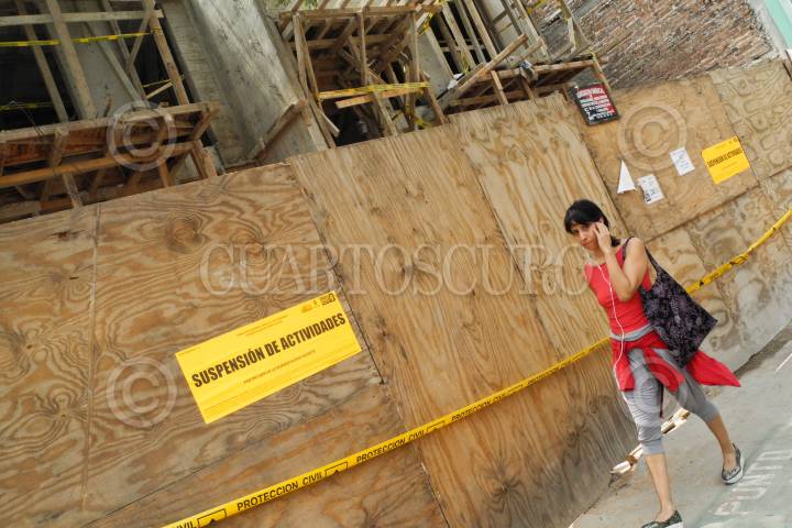 MÉXICO, D.F., 28JULIO2011.- La Secretaría de Protección Civil clausuró una construcción en la calle de Uxmal en la colonia Narvarte, debido a la falta de seguridad de dicha obra. FOTO: ISAAC ESQUIVEL/CUARTOSCURO.COM