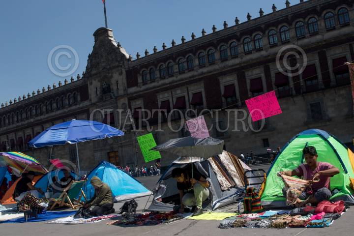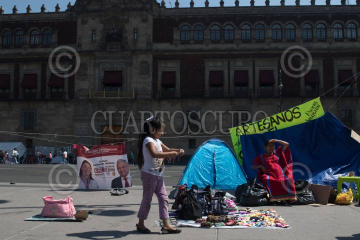 CIUDAD DE MÉXICO, 10FEBRERO2019.- Continúa un campamento montado por artesanos en las inmedicaciones de la plancha del zócalo frente al Palacio Nacional, ellos exigen les permitán vender sus artesanías en las inmediaciones del primer cuadro. FOTO: MOISÉS PABLO /CUARTOSCURO.COM