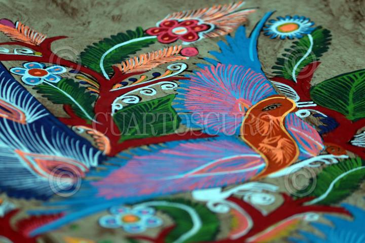 Detalle de una pintura hecha sobre papel amate por indigenas del estado de Guerrero.