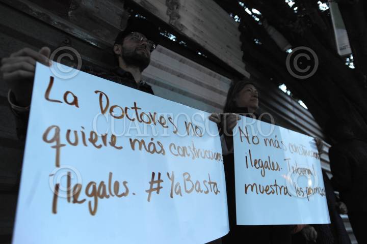 CIUDAD DE MÉXICO 17AGOSTO2016.- Vecinos de la colonia Doctores y Roma, no permitieron el acceso a trabajadores de la obra que se lleva a cabo en la esquina de Niños Héroes y Dr. Navarro en la colonia Doctores, ya que indican que dicha construcción no cuenta con los permisos necesarios para realizar dicha obra donde es construido parte de los inmuebles de los Tribunales. FOTO: LUIS CARBAYO /CUARTOSCURO.COM