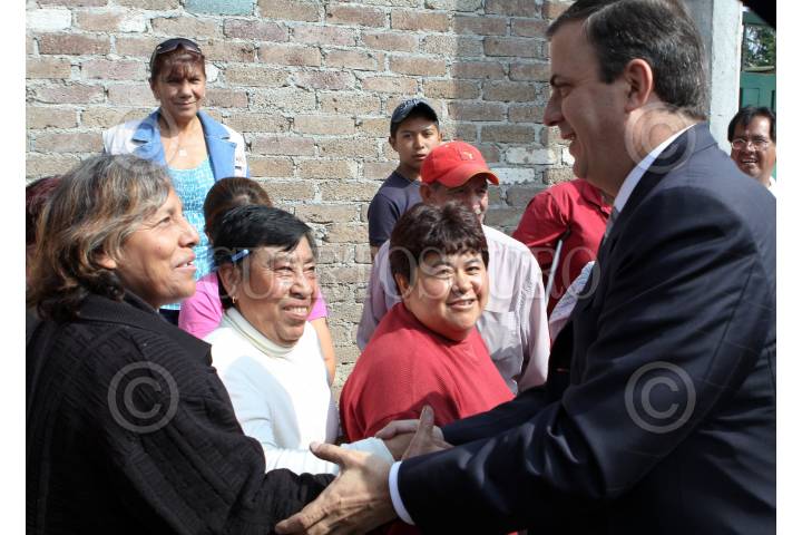 MÉXICO, D.F., 26MAYO2010.- Marcelo Ebrard, jefe de gobierno del Distrito Federal saluda a las vecinas a su llegada a la colonia Paraje Caballito en la delegación Alvaro Obregon en donde pondría en marcha el sistema que abastecerá de agua potable a las colonias Chamontoya, Tlacoyaque y Paraje Caballito en dicha demarcación pero no pudo ser inaugurado debido a la falta de energía eléctrica. FOTO: RODOLFO ANGULO/CUARTOSCURO.COM