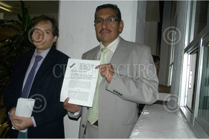 MÉXICO, D.F., 20ABRIL2010.- Manuel Oropeza, dirigente local del perredismo, presentó una denuncia en la fiscalía de delitos cometidos por servidores públicos denunciaron penalmente un presunto caso de abuso policial cometido en la delegación Cuajimalpa el pasado 14 de abril en el exterior del edificio de la jefatura delegacional. Detalló que los militantes de su partido, Marco Antonio Pérez Cervantes, Juan Carlos Rosales Cortés y Josué Abraham Barrera Macias, realizaban en ese sitio una campaña de volanteo cuando fueron 'arbitrariamente detenidos' por policías auxiliares. FOTO: SAÚL LÓPEZ/CUARTOSCURO.COM