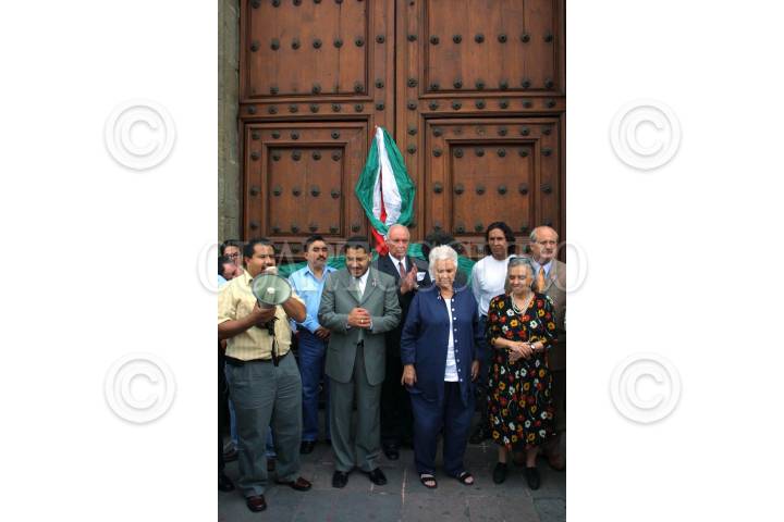 MEXICO D.F 20 ABRIL 2005.- Intelectuales y perredistas se manifestaron en Palacio Nacional en contra del desafuero que le fue impuesto a Andres Manuel López Obrador. FOTO: Eunice Adorno_CUARTOSCURO.COM