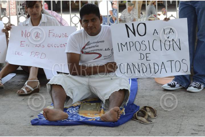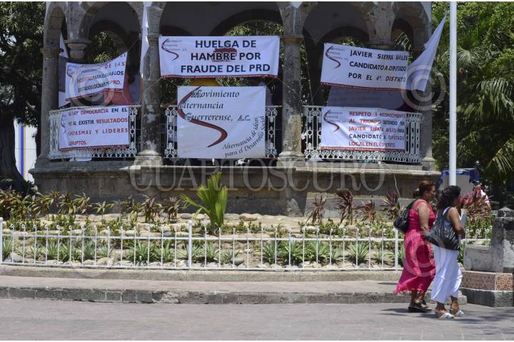 ACAPULCO, GUERRERO, 17ABRIL2012.- Perredistas de diferentes corrientes se pusieron en huelga de hambre en el kiosko del centro de la ciudad, esto por la imposición de candidatos en diferentes distritos, supuestamente por parta del gobernador Ángel Aguirre. FOTO: BERNANDINO HERNÁNDEZ /CUARTOSCURO.COM