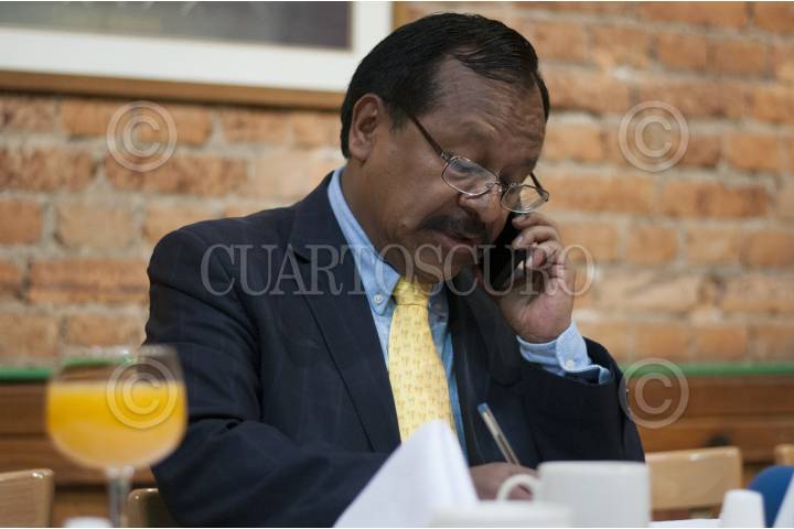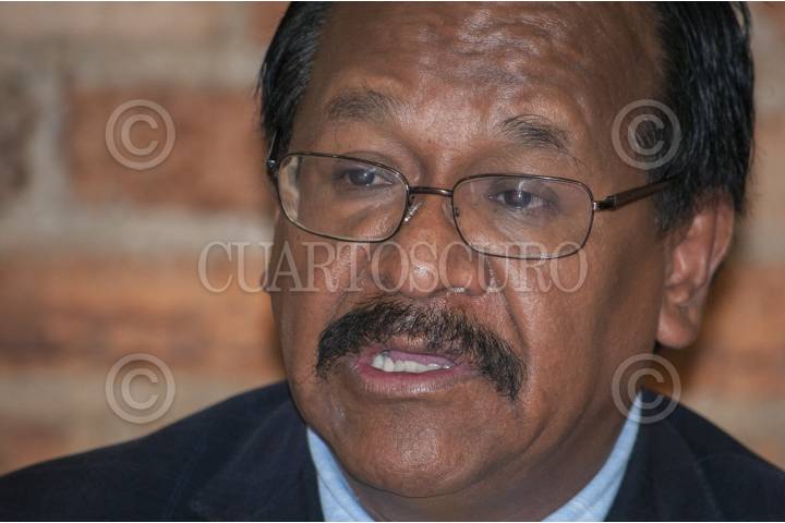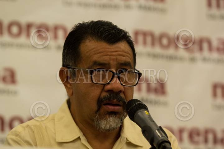 CIUDAD DE MÉXICO, 16ABRIL2018.- Gilberto Ensástiga, líder de la Unión de Colonias Populares, durante el mensaje a medios para anunciar su renuncia al PRD y su integración al proyecto de Regeneración Nacional. FOTO: GALO CAÑAS /CUARTOSCURO.COM