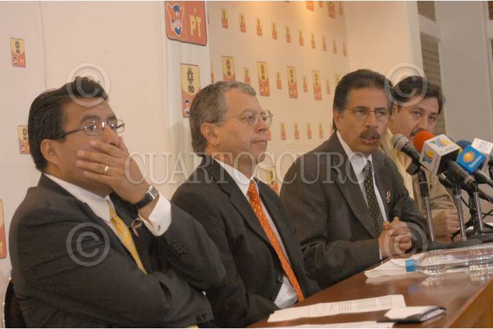 MÉXICO D.F. 18JULIO2006.- Los perreditas Eduardo Duarte, Manuel Camacho Solis, Jesús Ortega, Gerardo Fernández Noroña, durante su conferencia de prensa donde mencionaron que se seguiran con las acciones para que se realice el conteo del voto por voto y que aceptaran su derrota en caso de llegar hacer los perdedores en la contienda electoral. FOTO: Guillermo Perea/CUARTOSCURO.COM