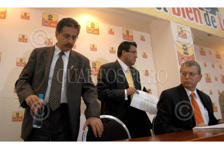 MÉXICO D.F. 18JULIO2006.- Los perreditas, Jesús Ortega, Eduardo Duarte y Manuel Camacho Solis, durante su conferencia de prensa donde mencionaron que se seguiran con las acciones para que se realice el conteo del voto por voto y que aceptaran su derrota en caso de llegar hacer los perdedores en la contienda electoral. FOTO: Guillermo Perea/CUARTOSCURO.COM