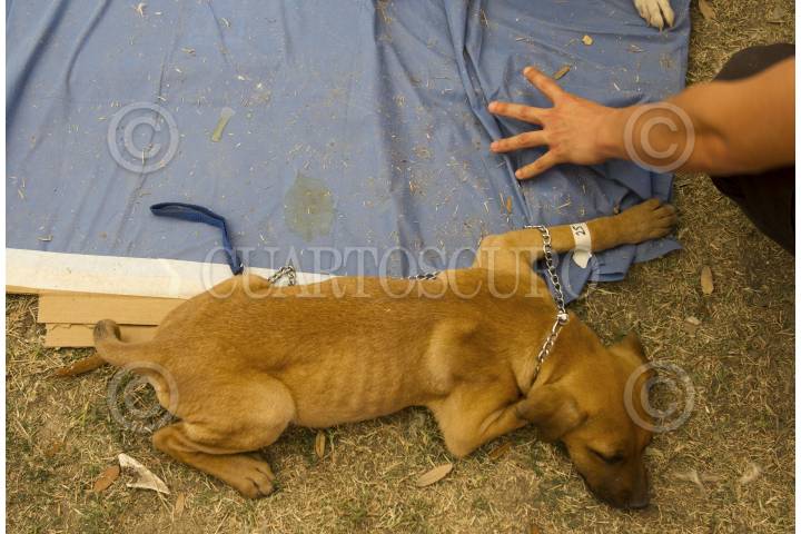 MÉXICO, D.F., 11ENERO2013.- Una veterinaria vacuna a un perro en las calles del Cerro de la Estrella en la delegación Iztapalapa. FOTO: SAÚL LÓPEZ / CUARTOSCURO.COM