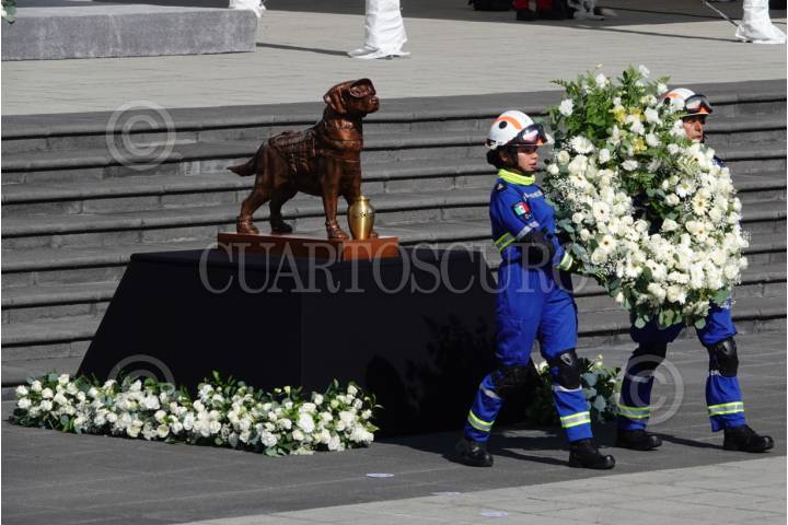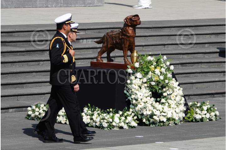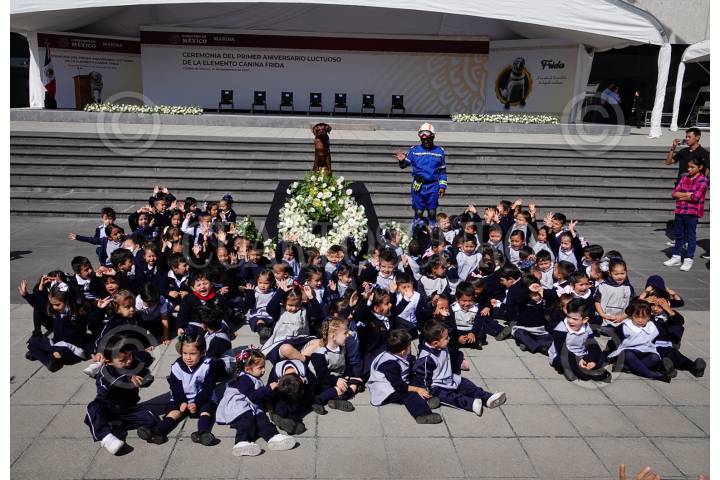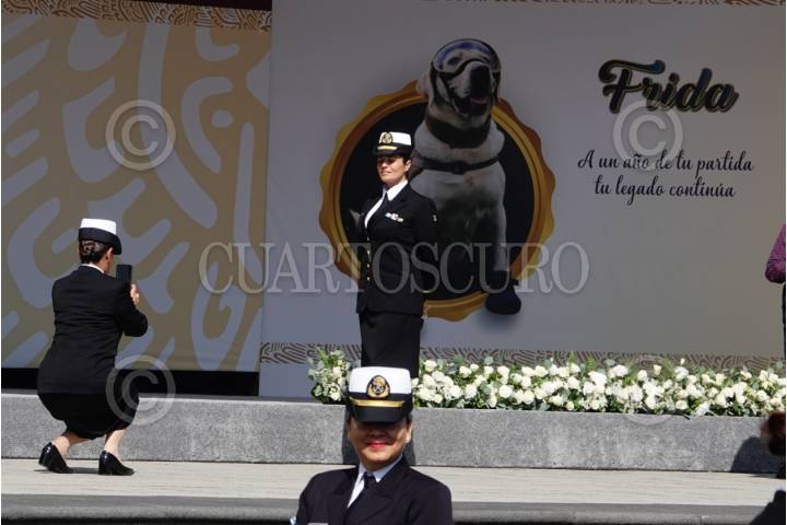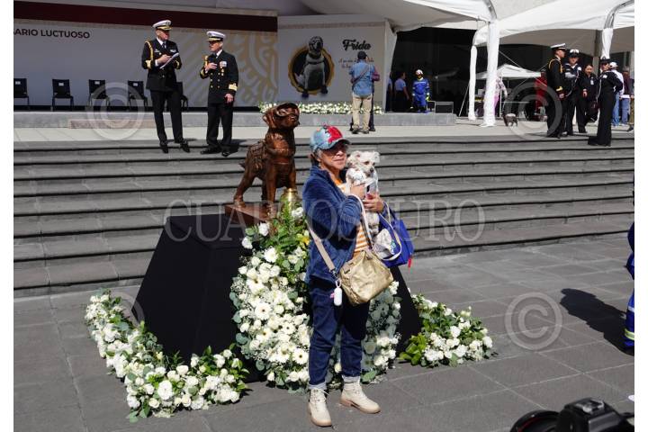 La Secretaría de Marina rindió un homenaje al elemento canino "Frida", al develar su escultura por su destacada trayectoria en las labores de rescate del sismo del 19 de septiembre de 2017.