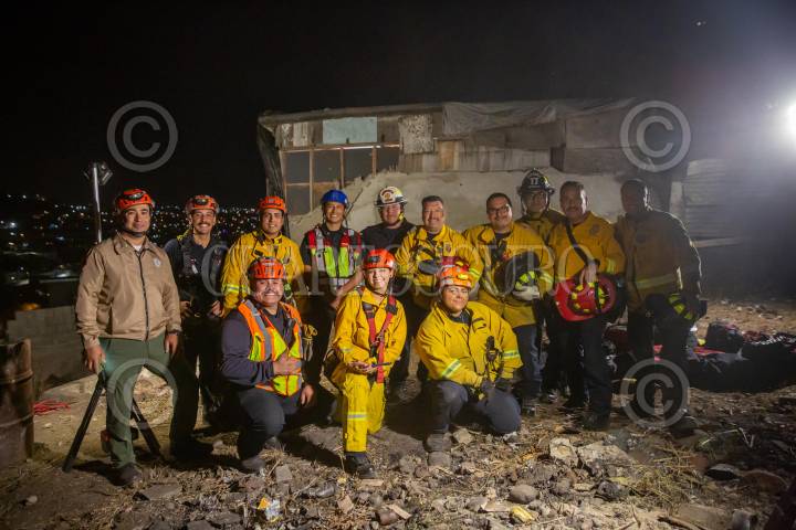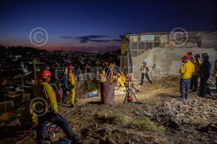 TIJUANA BAJA CALIFORNIA, 29OCTUBRE2024.-Grupo de bomberos durante el rescate. Tras trabajar por poco más de dos horas, elementos del cuerpo de bomberos lograron rescatar con éxito a un perro que llevaba atrapado varios días en el fondo de un pozo de alrededor de 20 metros de profundidad. Vecinos de la colonia Obrera fueron quienes, alrededor de las 5:00 de la tarde notificaron a las autoridades que habian escuchado ruidos en un pozo ubicado sobre la calle Pípila y en el fondo había un perro atrapado.A pesar de la poca visibilidad y el poco espacio, alrededor de 13 bomberos y un elemento de Protección Civil, se prepararon con equipo especial para realizar las maniobras de rescate. Gracias al arduo trabajo en equipo de los héroes de la ciudad, lograron sacar sano y salvo al perrito, alrededor de las 7:00 de la noche, el cual salió corriendo desesperadamente tras volver a sentir la libertad.FOTO: CHRIS NOYOLA/CUARTOSCURO.COM