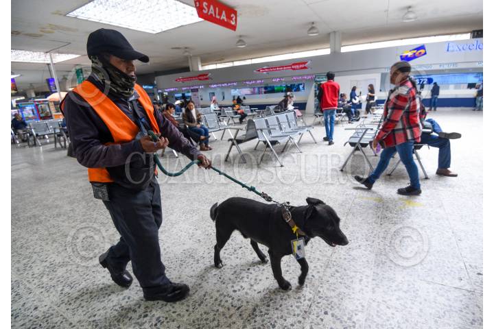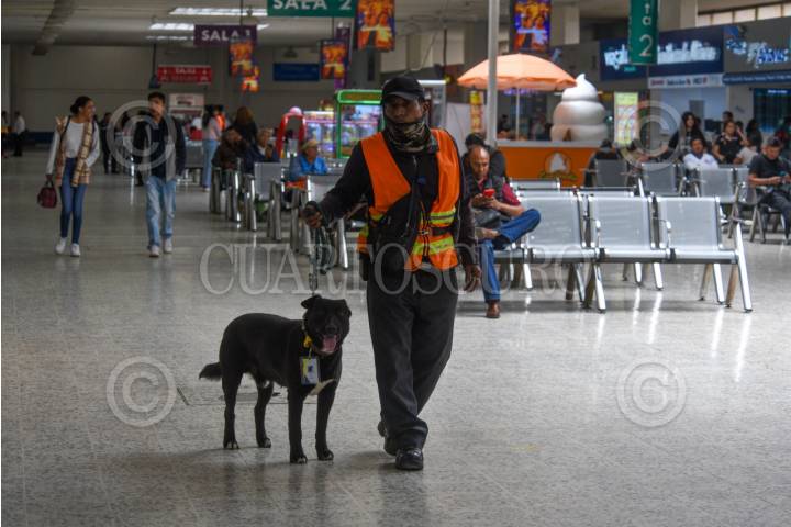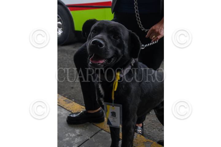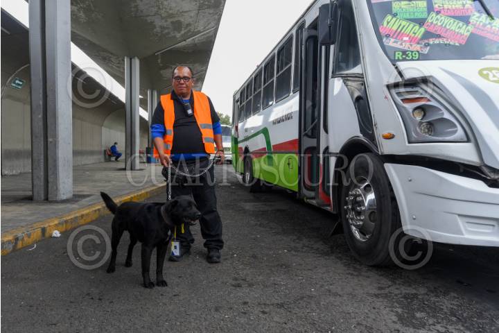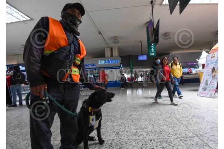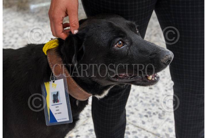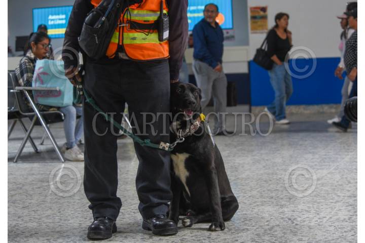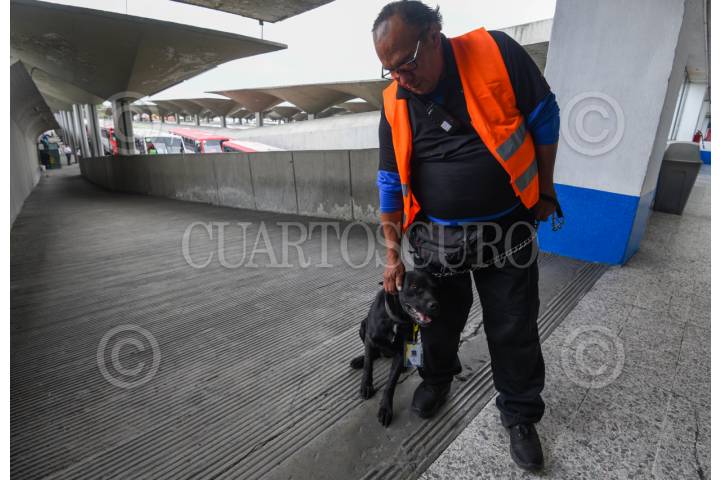TOLUCA, ESTADO DE MÉXICO, 06AGOSTO2025.- Sam es un de dos perritos que forma parte de la seguridad canina de la Terminal de Autobuses de Toluca, llegó hace un año de la calle y aquí encontró un hogar, recorre los pasillos de la Terminal con sus compañeros de turno, con su credencial para ser identificado como personal del lugar; este perrito fue esterilizado, cuenta con sus vacunas, y recibe mimos, caricias y premios durante su jornada de trabajo, los usuarios ya lo reconocen y conviven con él. En este lugar no solo se le ha dado un hogar y trabajo a estos perritos, también alimentan a otros que llegan a descansar. Perros y gatos han sido abandonados y aquí se les atiende, brinda cariño y una segunda oportunidad, ya que promueven la adopción de los mismos. FOTO: CRISANTA ESPINOSA AGUILAR/CUARTOSCURO.COM