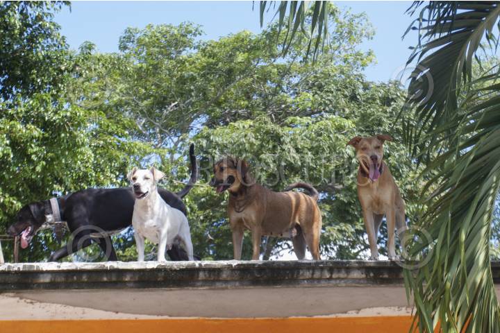 Perros toman el sol en uno de los patios del refugio "La Casa del Mestizo", el cual añberga actualmente 120 perros.
