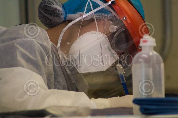 Un médico del Hospital General de México, realiza anotaciónes durante una valoración de un paciente positivo a COVID-19